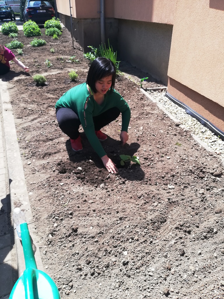 Na školním pozemku jsme si zasadili dýni a další bylinky.